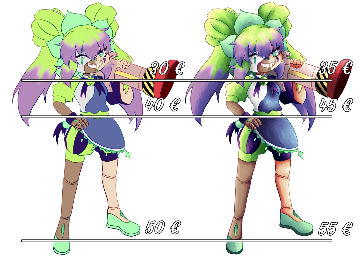 Cryptocurrency (such as Bitcoin) will not be accepted.By mandating me, you accept my terms of service :My client is required to give me directly a visual reference for the order - including specifications regarding the pose, colors and clothing. I will work with the aforementioned reference, so please make sure it is as accurate as possible. If the reference does not represent exactly the idea you had in mind, it will not be possible to obtain a refund for that reason.✦ I have the right to decline an order and I do not have to give a specific reason for that.✦ In the case of an important order, the client will receive up to 3 sketches to check if changes are required before I continue my work. After this part, I will not show progress, except if previously agreed.✦ I do not disclose any sensitive information about the client, and the client must act the same. This includes, but is not limited to :